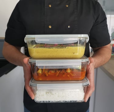 Il n'est pas toujours évident de prendre le temps de faire à manger : c'est là qu'intervient le Batchcooking : les repas de la semaine sont préparés en une fois et stockés au réfrigérateur en boîtes hermétiques.